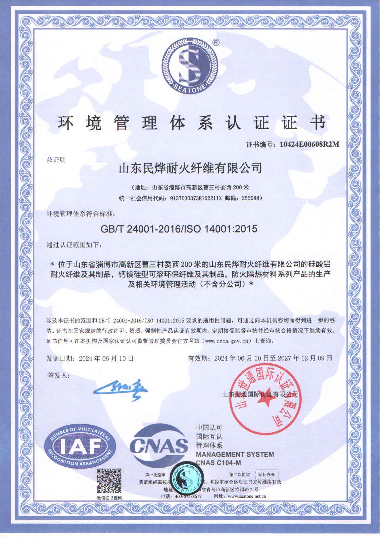 • 2024年環(huán)境體系認(rèn)證證書